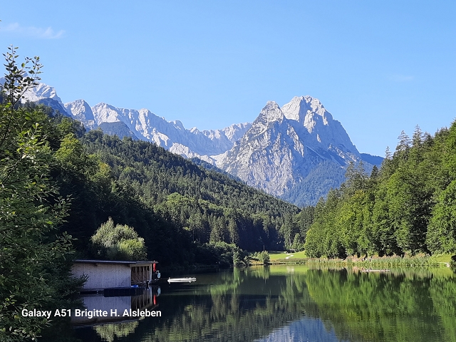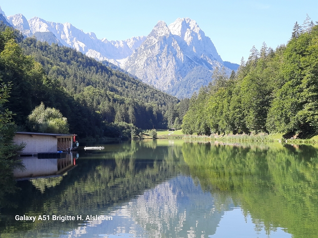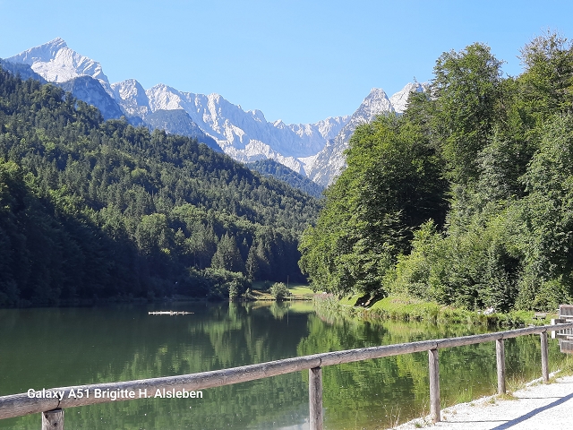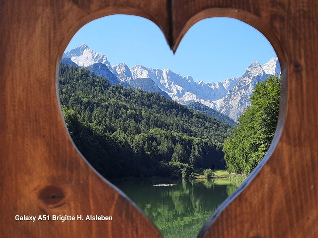 Der Riessersee oberhalb von Garmisch im August 2025Riessersee mit Blick auf AlpspitzeBlick auf Riessersee und Waxensteine, die die Zugspitze verdeckenEin Engel bgleitete mich ?!Ein Herz vom Riessersee